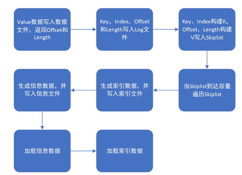 whiskey 是2016年发表的一篇论文,主要解决了LSM中大数量写入后频繁数据归并的问题,在LSM这种数据结构中,数据的Key和Value值都是要写入内存的,当数据到达内存设定的阈值时进行归档处理。对于value值较大的数据来说,这个归档就会变得特变频繁,而whiskey的理念是将value单独保存至另外的文件位置,LSM结构内保存的是Key以及这个Value所在文件的偏移量和长度,以此来降低归档频。按照论文上的介绍,归档频率可以降低一个数量级。